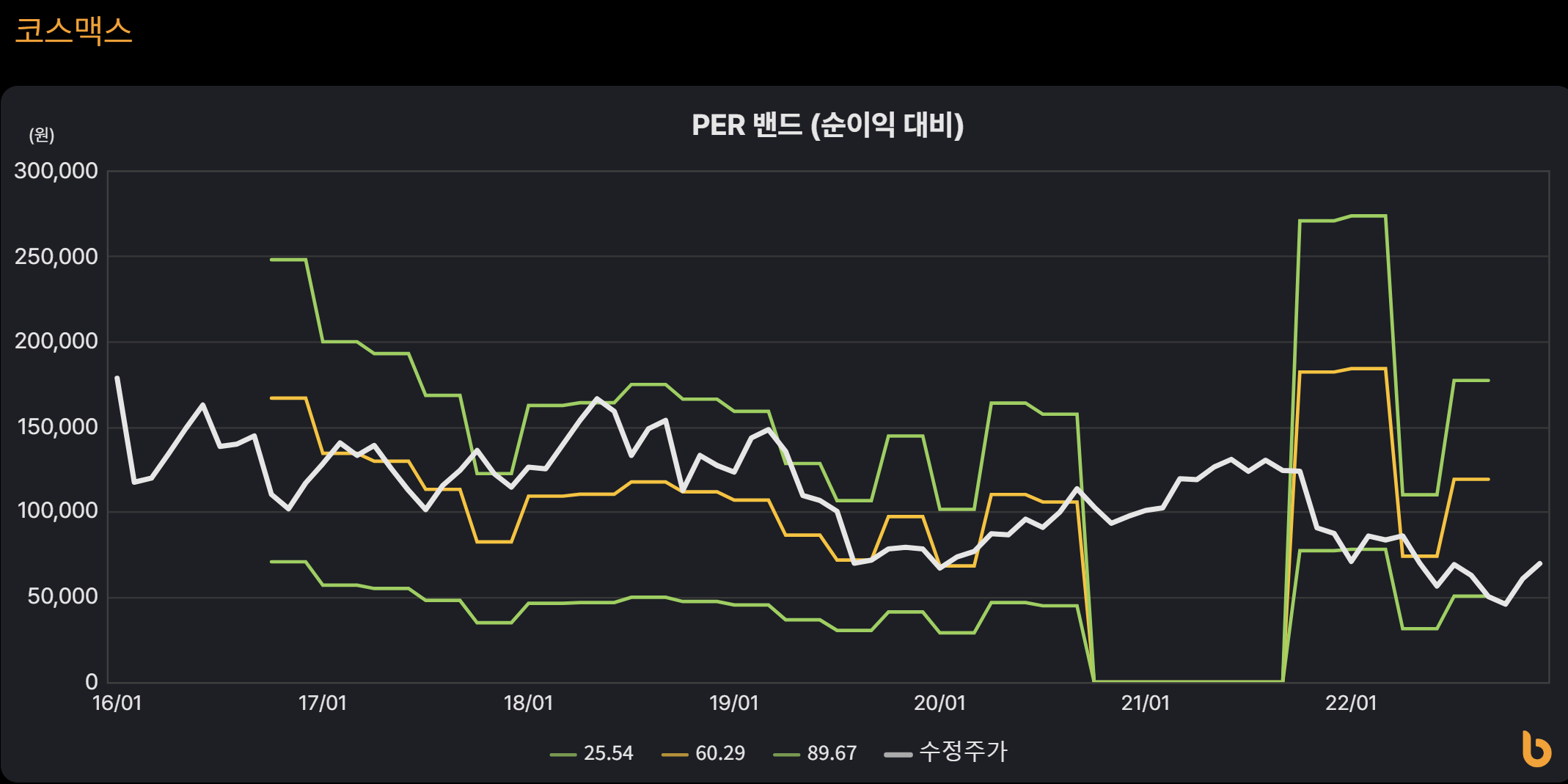 한한령과 코로나를 거치며 그냥 바닥까지 박아버렸는데, 예전처럼 20배 받을 수 있다고 하면 멀티플 올라갈 수도...?