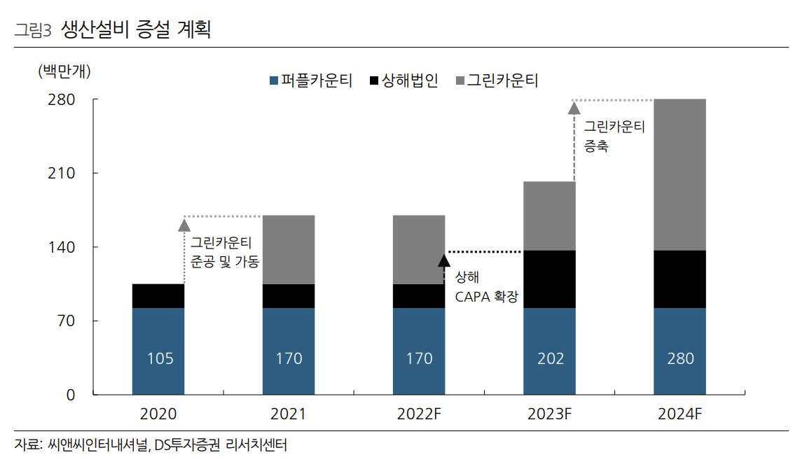 색조화장품 연간 생산능력은 21년 1억 7000만 개에서 2024년까지 2억 8000개로 1.6배가량 확대할 계획