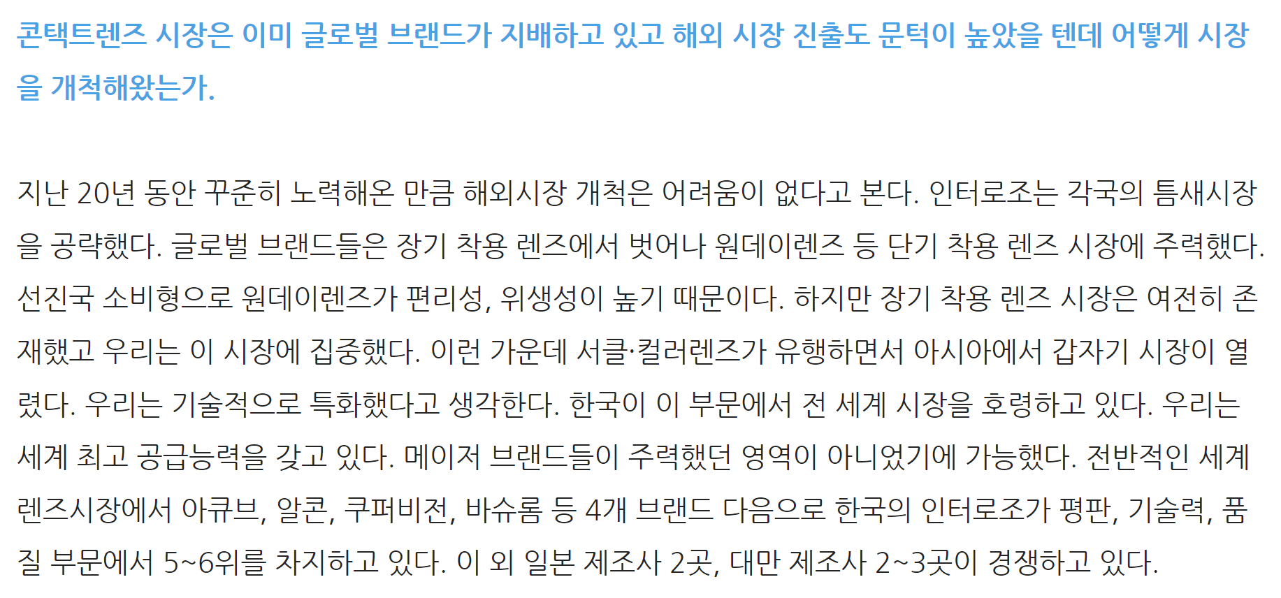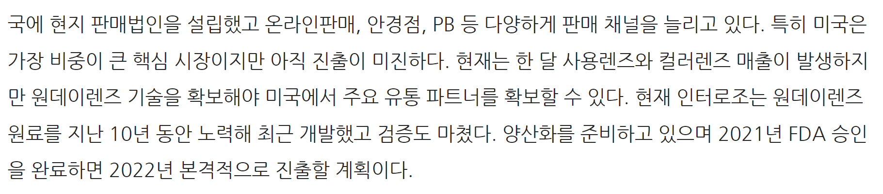기존에는 FRP 틈새시장 노리다가 이제 실리콘 하이드로겔 원데이 렌즈도 새로 만들었겠다, 이쪽으로 선진국 시장 가성비로 뚫을 생각인 것이 아닐까?