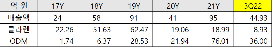 A. 한 90%가 클라렌, 10% 정도가 ODM 생각하면 된다.