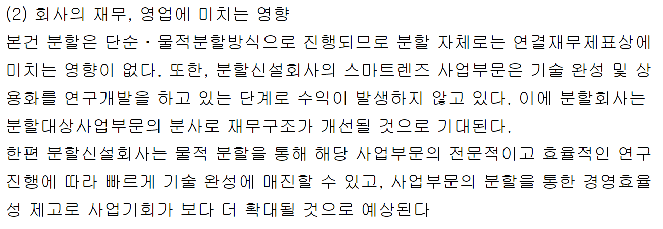 그리고 오늘 공시 있다고 바쁘시다 했는데, 당연히 잠정실적인 줄 알았는데 그게 아니고 스마트렌즈분할도 있었다.